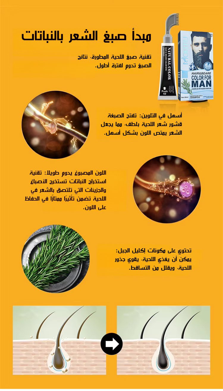 صبغة الشعر واللحية من مستخلصات نباتية طبيعية ( صبغ الشعر واللحية إلى اللون الأسود خلال 5 دقائق )