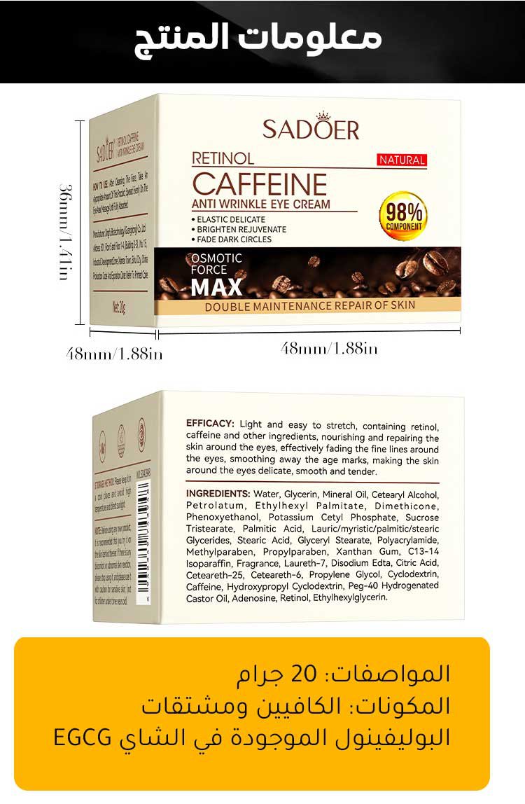 【تفتيح لون البشرة حول العين وتقليل التجاعيد】كريم عين منعش ومرطب بالكافيين
