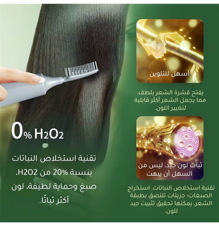 مشط لطيف كفيل بتحويل الشعر الرمادي إلى أسود. هذا مشط صبغ شعر نباتي حاصل على شهادة سلامة الإنتاج من الاتحاد الأوروبي. مصنوع من مستخلصات نباتية وطبية طبيعية. لطيف على الشعر ولا يسبب تهيجًا. يدوم لونه لعشر سنوات بعد الاستخدام! إنه أفضل من مشط الصالونات. يمكن استخدامه لصبغ الشعر واللحى.